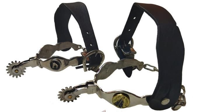 Espora Gonzaga com detalhe em aplique Nossa Senhora e correia em couro de búfalo. Produto confeccionado em aço inoxidável, livre de ferrugens. Além de oferecer ótima qualidade, oferece também estilo para qualquer ocasião.